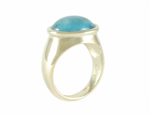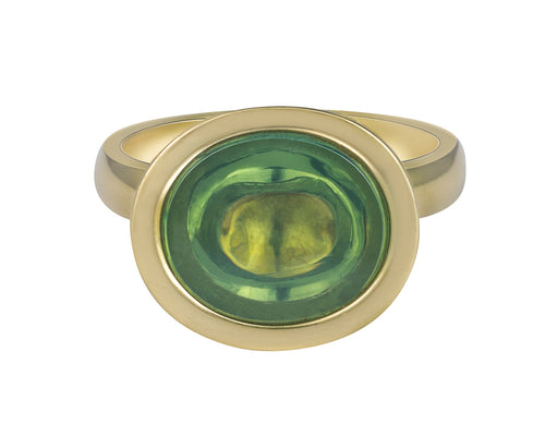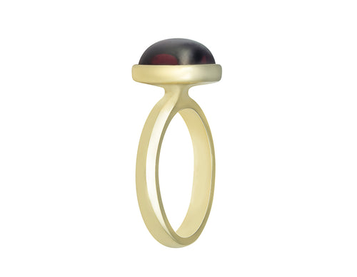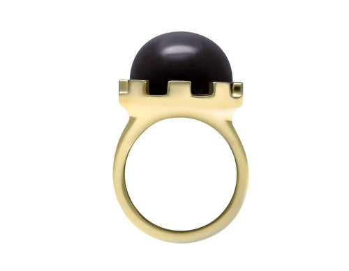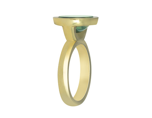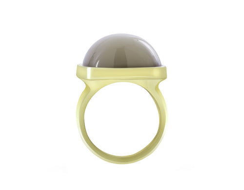 Solid 18k gold rings. A particular emphasis on green and rose 18k gold, set with voluminous cabochons of one of a kind gems. En cabochon is the jewellery term for these un-faceted domed gems, and Disegno loves them big and deeply saturated.