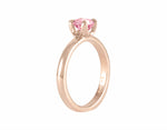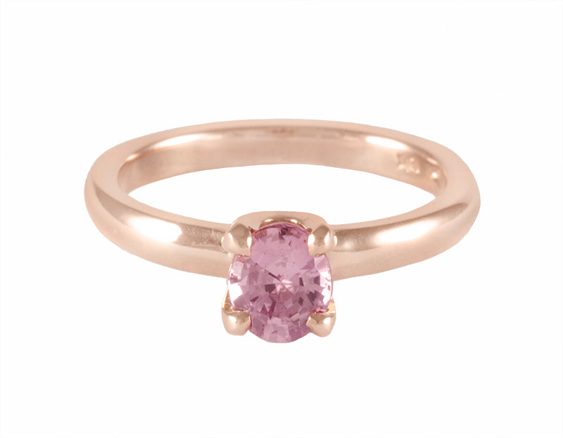 Padparadscha sapphire set in 18k rose gold. Padparadscha is the Sinhalese term for the orange-pink colour of an orchid. This 0.93 natural sapphire combined with the rose gold is indeed as delicate as an orchid blossom.