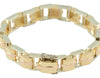Custom designed solid 18k yellow gold bracelet inset with 18k rose gold and linked with 18k white gold -- a total of 70 grams of gold! Anne A. of Ottawa loves her bracelets. For her birthday she wanted a gold bracelet to complement her Rolex watch. A little overhang of the rose gold stripe gives leverage to open the tight clasp of the bracelet and figure 8 catch gives added safety.